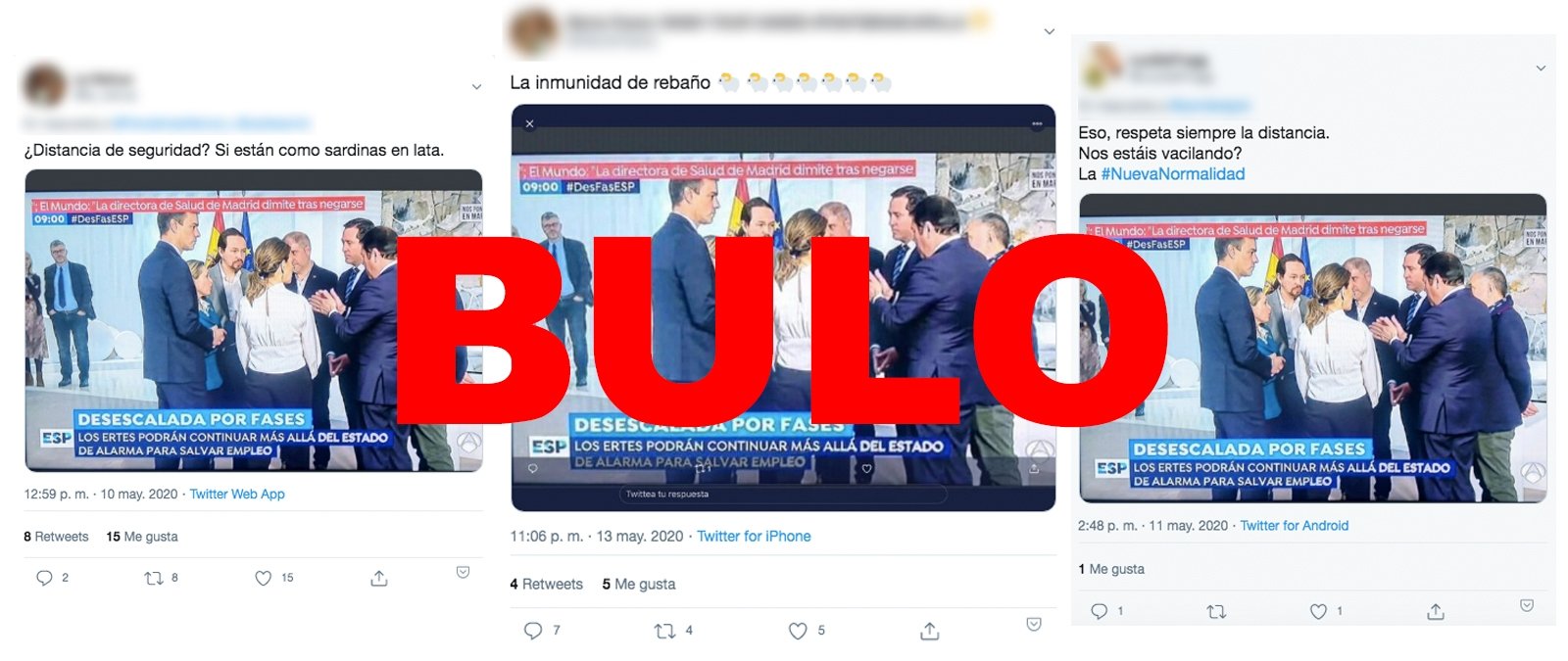 Está circulando una imagen en la que se ve a miembros del Gobierno, entre ellos el presidente Pedro Sánchez, hablando en un 'corrillo' sin respetar la distancia social. Se comparte con mensajes como "la inmunidad de rebaño" o "¿Distancia de seguridad? Si están como sardinas en lata". Pero es un bulo que esta imagen sea actual. Es del pasado 30 de enero, cuando el Gobierno firmó la subida del Salario Mínimo Interprofesional (SMI) con sindicatos y empresarios.