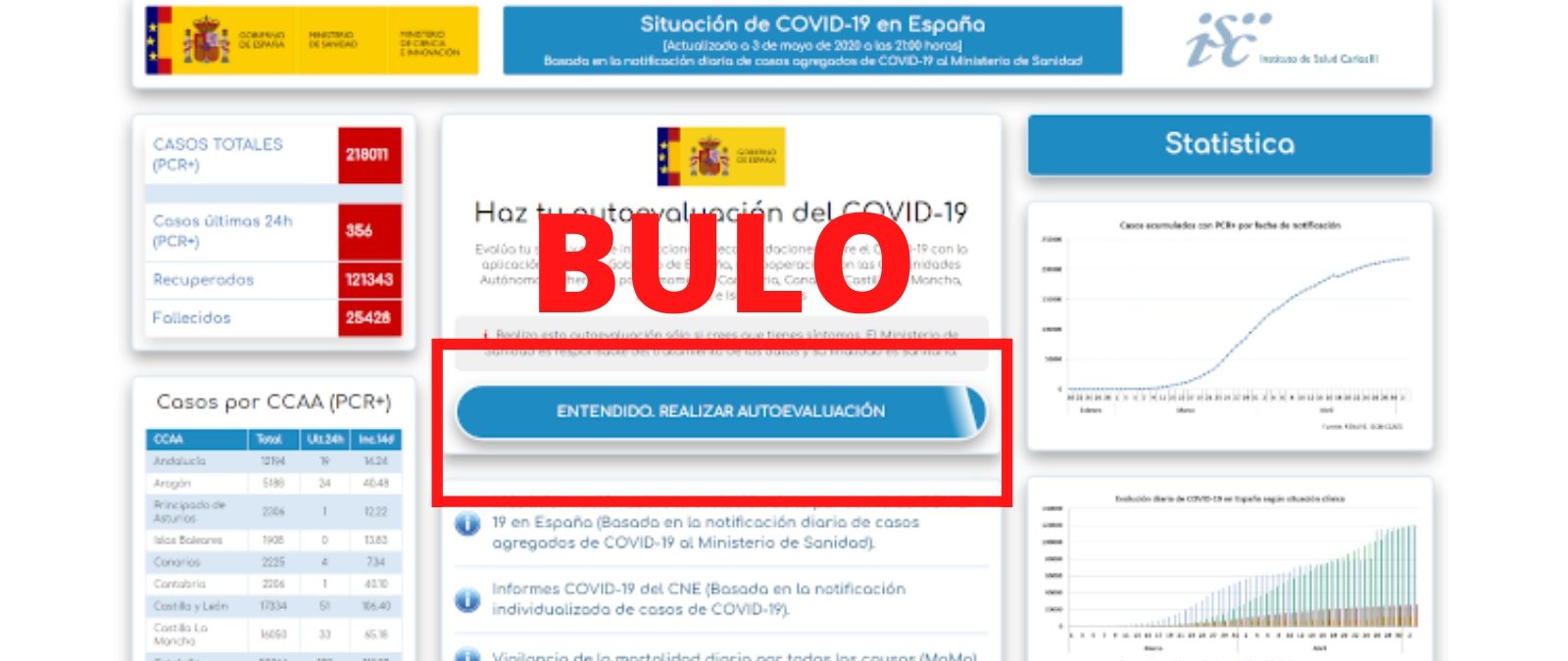 Se están enviando SMS en los que se pide a la gente hacerse un test de autoevaluación sobre COVID-19 en una página que suplanta al Ministerio de Sanidad y al Instituto de Salud Carlos III. Cuidado porque según la Oficina de Seguridad del Internauta (OSI), es una página fraudulenta que te anima a realizar un test mediante un enlace que podría descargar un virus en tu dispositivo.