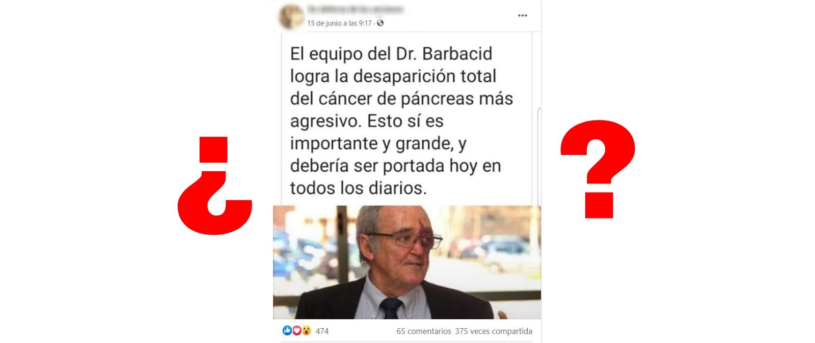 Está circulando en forma de captura un contenido que dice que el doctor Barbacid "logra la desaparición total del cáncer de páncreas más agresivo" y que la noticia debería ser portada "hoy" en los telediarios. Un equipo de investigadores del Centro Nacional de Investigaciones Oncológicas (CNIO), liderado por el doctor Mariano Barbacid, consiguió eliminar algunos tipos de cáncer de páncreas pero en modelos animales, no en humanos. Además, Barbacid ha remarcado que antes de hacer ensayos clínicos en humanos el equipo tendría que diseñar fármacos y el hallazgo se hizo público en 2019. Os contamos lo que sabemos.