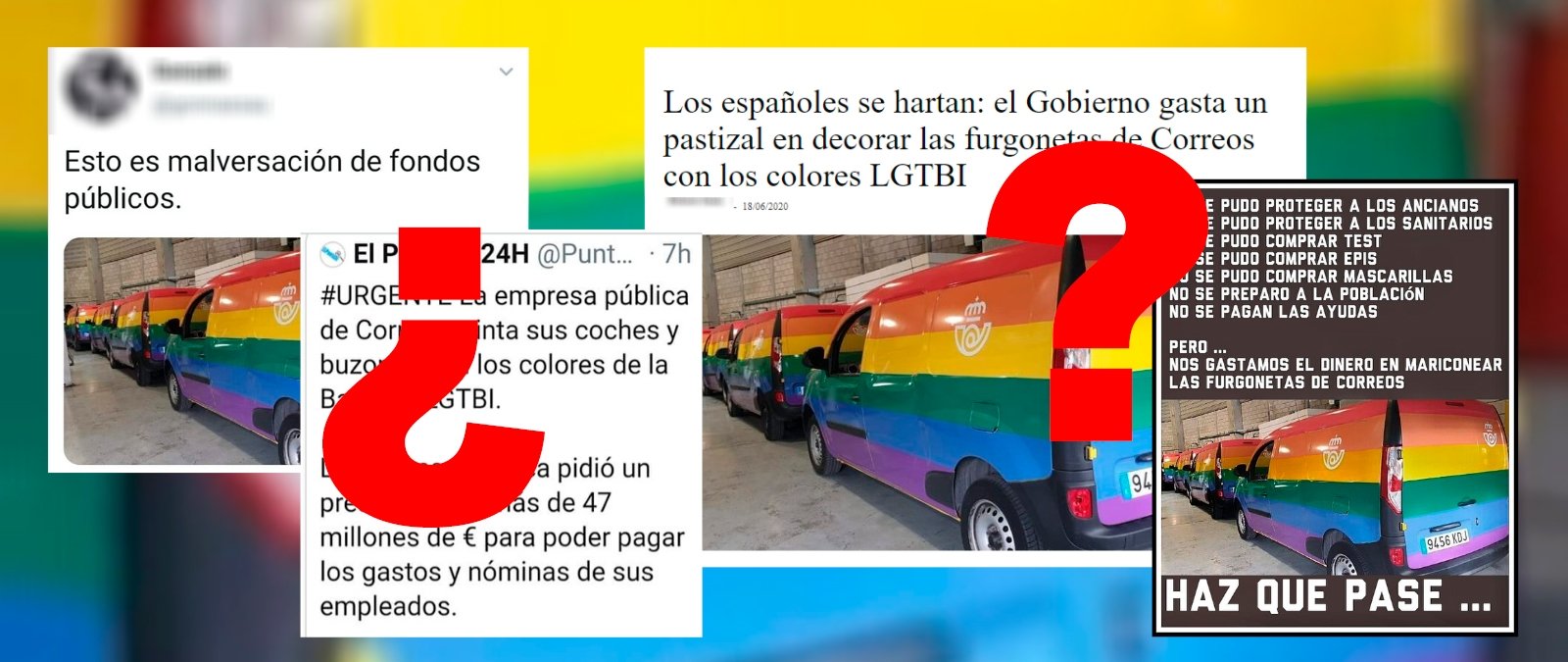 Nos habéis preguntado por la nueva campaña de Correos lanzada por el Día del Orgullo porque circulan de forma viral diferentes mensajes que dicen que “la empresa pública de Correos pinta sus coches y buzones con los colores de la bandera LGTBI” y, a la vez, pide “préstamos de más de 47 millones de euros para pagar los gastos y nóminas de sus empleados”. Otros contenidos apuntan a que “el Gobierno gasta un pastizal en decorar las furgonetas de Correos con los colores LGTBI”, que es “un gasto innecesario en plena catástrofe económica” e, incluso, que se trata de “malversación de fondos”. Os explicamos lo que sabemos: