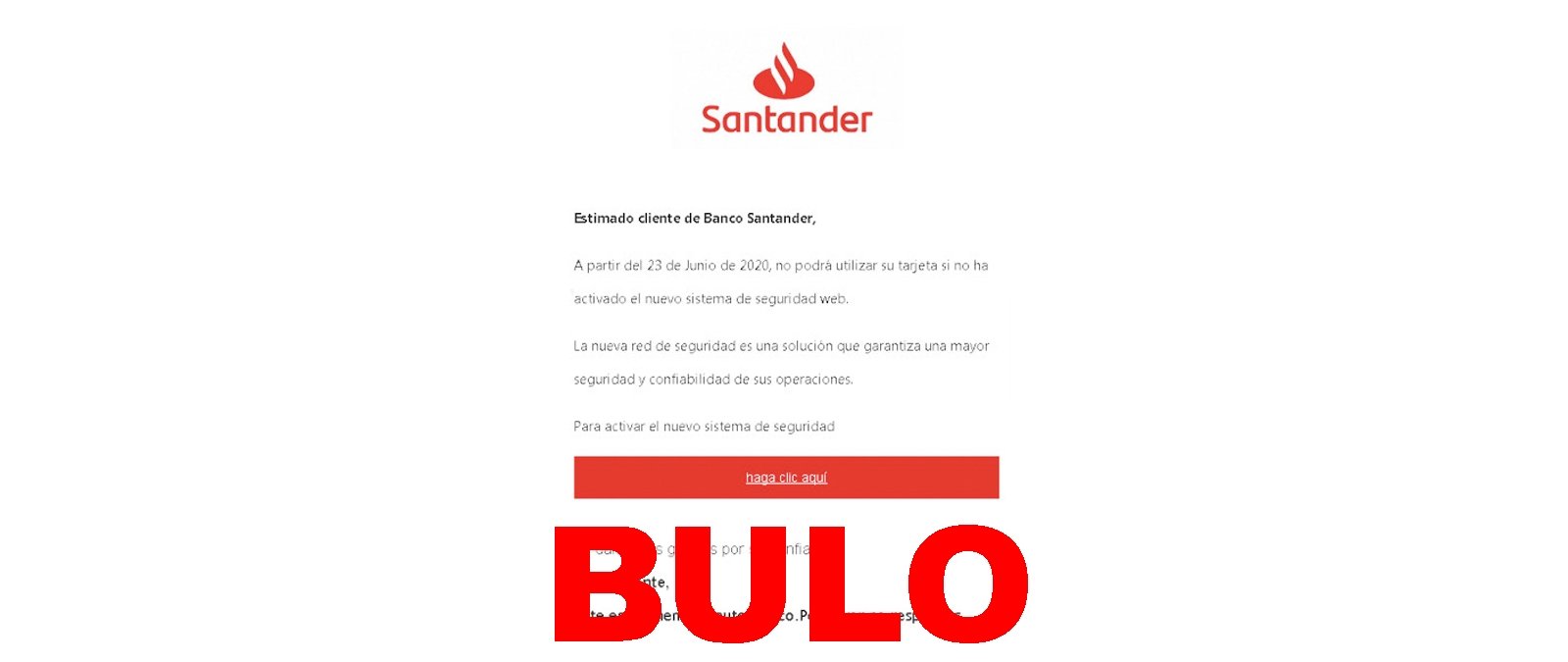 Si en los próximos días recibes un supuesto correo electrónico del Banco Santander en el que te piden que facilites tu clave de acceso para activar un "nuevo sistema de seguridad", es importante que no lo abras ya que se trata de un caso de phishing, una técnica que busca hacerse con tus datos y, a veces, también con tu dinero.