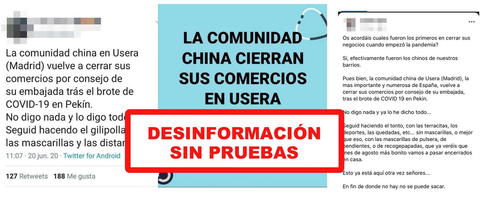 Están circulando carteles y mensajes que afirman que en la última semana “la comunidad china en Usera (Madrid) vuelve a cerrar sus comercios por consejo de su embajada tras el brote de COVID-19 en Pekín”. No hay pruebas: desde la Embajada de China afirman que “nunca han recomendado ni recomiendan el cierre de comercios a la población china en España”. Además, varios comercios de la zona aseguran a Maldita.es que no han recibido ninguna recomendación por parte de la Embajada de China, que los comercios no están cerrando y que gran parte de los comercios chinos del barrio están abiertos, esto último comprobado por Maldita.es de manera presencial.