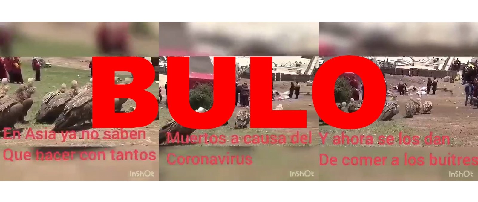 Volvéis a consultarnos por un vídeo en el que vemos a un grupo de personas cortando los cuerpos de varios cadáveres y a buitres amontonándose alrededor de los mismos para alimentarse. En el texto que incluye el vídeo se dice lo siguiente: "Esto es lo que los medios de comunicación no quieren que sepas, en Asia no saben qué hacer con tantos muertos a causa del coronavirus, los entierran, los queman y ahora se los dan de comer a los buitres". Es un bulo. El vídeo ni es actual ni está relacionado con el coronavirus: es de 2014 y muestra un ritual funerario tibetano.