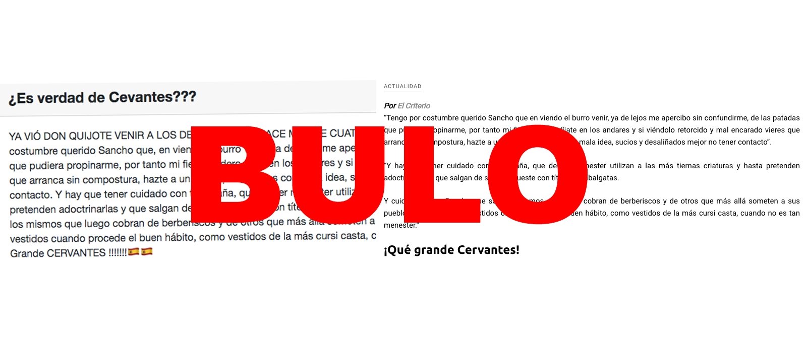 Nos habéis consultado a través de La Buloteca por una supuesta cita de Miguel de Cervantes en su obra El ingenioso hidalgo Don Quijote de la Mancha (1605 y 1615) en la que el protagonista, según dice la cadena, ya "vio venir a los de Podemos" hace "más de 400 años". Es un bulo, la cita no está en esta obra.
