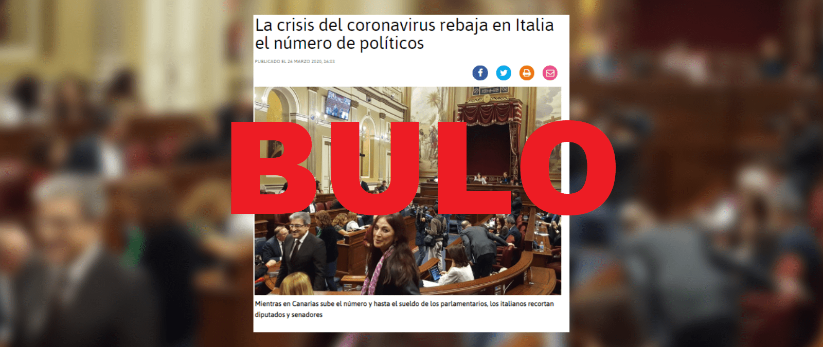 Nos habéis vuelto a preguntar por un contenido que dice que "la crisis del coronavirus rebaja en Italia el número de políticos" y, también, por otro que dice que "recortan el gasto político y eliminan 230 diputados y 115 senadores" en Italia "en plena crisis del coronavirus". Es un bulo: aunque Italia ha aprobado una reducción del número de parlamentarios*, no ha sido debido a la crisis generada por el coronavirus. Las dos páginas web se hacen eco de una noticia publicada por La Razón en octubre de 2019 y el contenido que mueven está descontextualizado.
