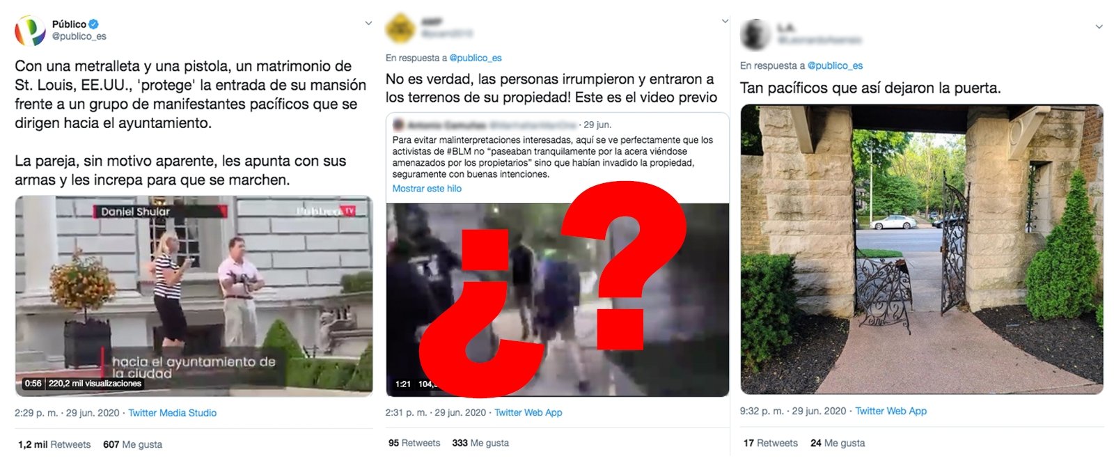 El matrimonio dijo a la Policía que los manifestantes rompieron la puerta para entrar, según Snopes, miembro del International Fact-Checking Network (IFCN). En el informe policial oficial publicado por Snopes, Mark y Patricia McCloskey declararon que vieron a un grupo romper con fuerza la puerta de hierro de la entrada "marcada con los letreros de 'Prohibido el paso' y 'Calle privada'". La investigación policial sigue abierta.