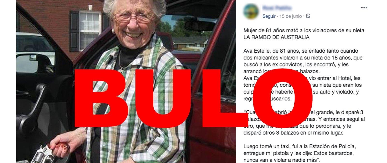 Circula por redes sociales un texto que cuenta la supuesta historia de Ava Estelle, una abuela de 81 años que mató a los violadores de su nieta y que es conocida como "la Rambo de Australia". Es un bulo, el origen es un contenido de 1998 de un tabloide satírico.