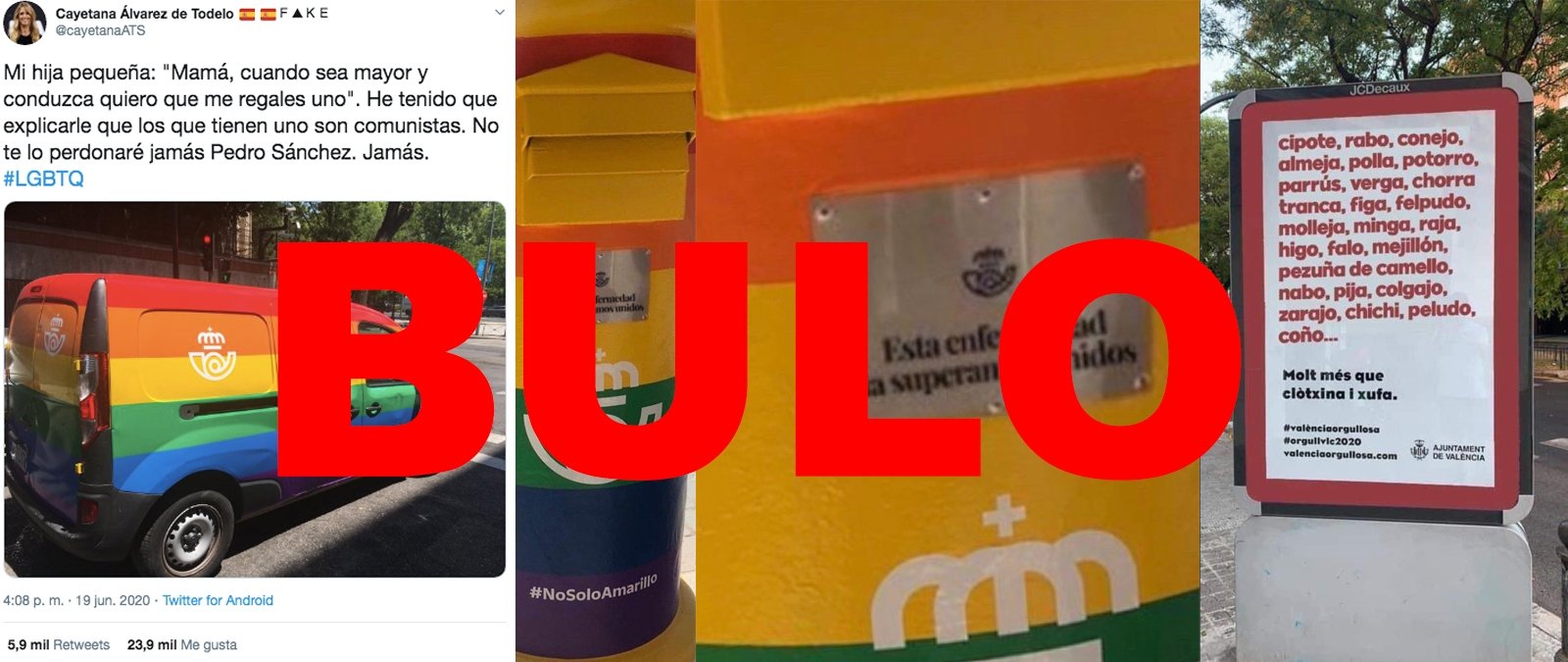 En los últimos días está circulando mucha desinformación sobre el Orgullo LGTBI, que se celebra este 28 de junio, como también ocurrió en 2019. Por ejemplo, se mueven bulos sobre la campaña de Correos o la del Ayuntamiento de Valencia. También, contenidos sobre un manifiesto de colectivos LGTBI en el que supuestamente piden una Renta Básica Universal al Gobierno "por ser homosexual", que ya hemos desmentido.