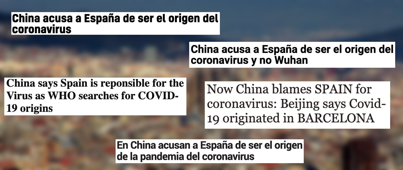 Los medios españoles que se han hecho eco de esa supuesta acusación de China se basan en un artículo del periódico británico The Telegraph, que incluye las declaraciones de Wang Guangfa, experto en salud respiratoria del Primer Hospital Universitario de Pekín y miembro del grupo de expertos de la Comisión Nacional de Salud de China, según la agencia estatal China News Service. En dichas declaraciones, Wang asegura que la Organización Mundial de la Salud (OMS) debería viajar a España para investigar el origen del virus después de que se detectara el SARS-CoV-2 en una muestra de aguas residuales de Barcelona en marzo de 2019.