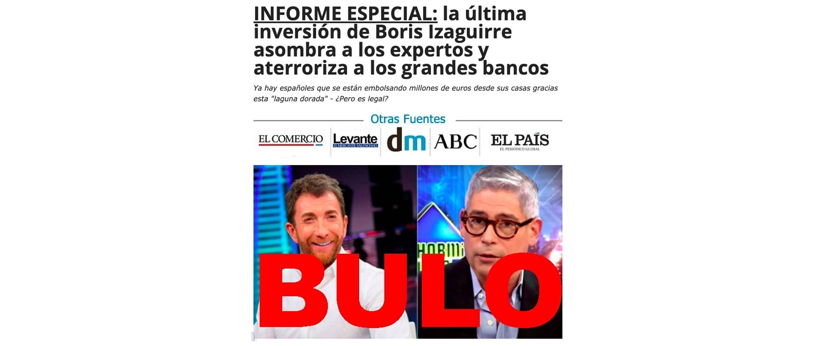 El modus operandi de este timo pasa por suplantar a un medio de comunicación para ganar credibilidad (en este caso, El Mundo) e inventarse una entrevista de alguien conocido en El Hormiguero. Como decimos, Boris Izaguirre no ha recomendado invertir en Bitcoin Up en dicho programa.