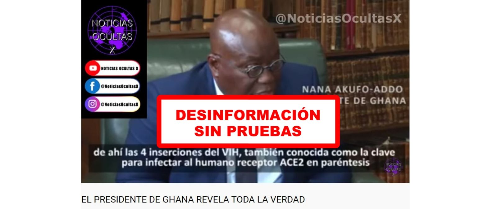Por lo tanto, no hay pruebas de que la voz del vídeo pertenezca al presidente de la República de Ghana y tampoco hay evidencias de que el virus haya sido creado en un laboratorio.