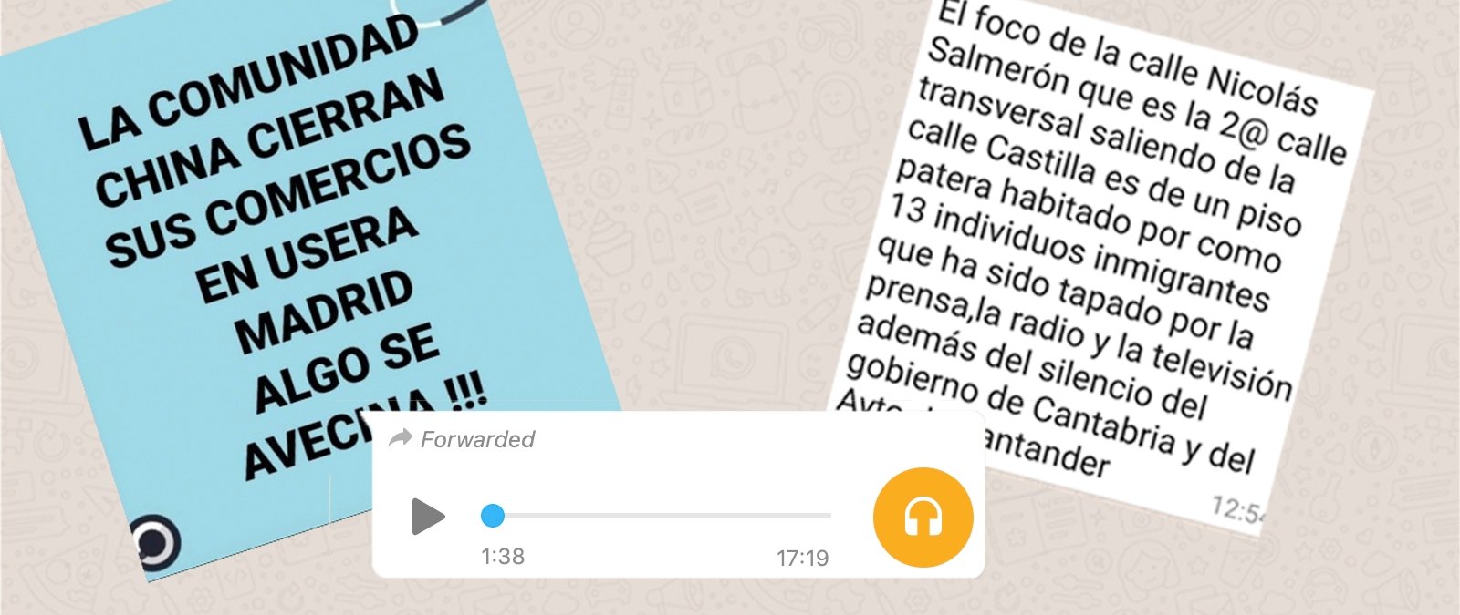 Desde que la COVID-19 fuera descubierta en un mercado de Wuhan a finales de 2019, los desinformadores han aprovechado para desinformar y criminalizar a la población china en España, señalándola como foco de contagio. Pero no es el único colectivo migrante que ha sido víctima de estos bulos durante la pandemia, también los inmigrantes que han llegado en patera a las costas de la isla de Fuerteventura han sufrido las consecuencias de la desinformación: en forma de audio o de cartel se han difundido por la isla canaria diferentes bulos que aseguran que inmigrantes con coronavirus se han dado a la fuga y están poniendo en peligro a la población.