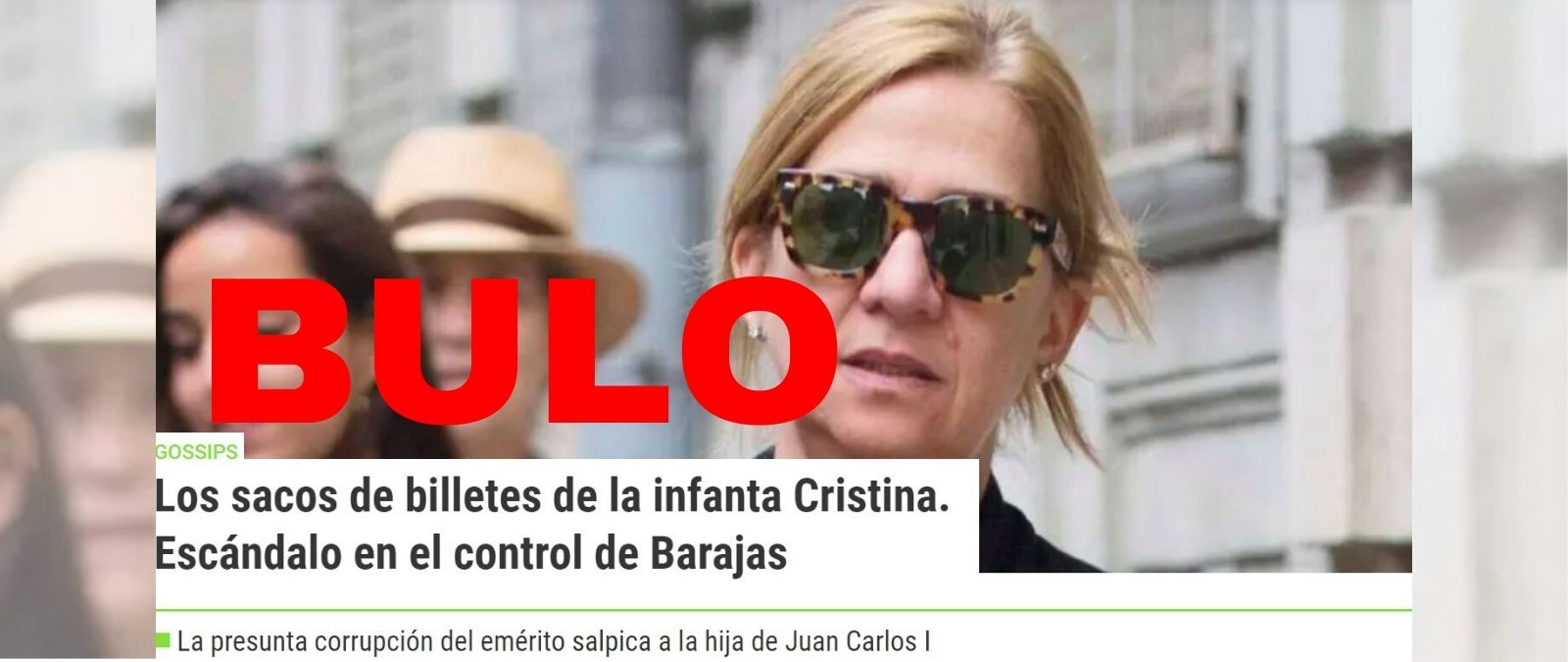 La web Diario Gol utiliza un titular desinformador para dar a entender que se ha descubierto a la infanta Cristina con sacos de billetes en un control del aeropuerto de Madrid-Barajas Adolfo Suárez. El título dice "Los sacos de billetes de la infanta Cristina. Escándalo en el control de Barajas", y el subtítulo añade que "La presunta corrupción del emérito salpica a la hija de Juan Carlos I". Pero es un titular falso: dentro del artículo no hacen referencia al supuesto control ni a los supuestos sacos de billetes de la infanta.