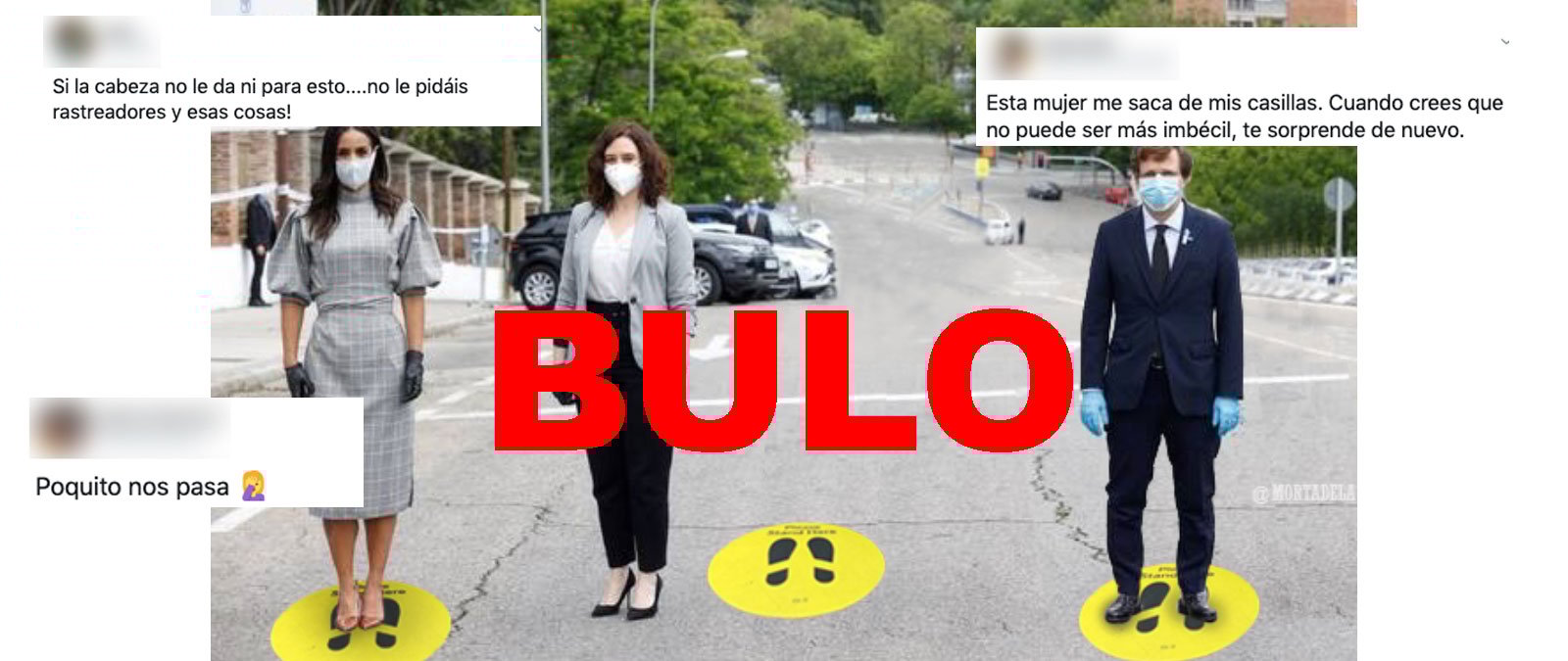 Nos estáis preguntando por una imagen de la presidenta de la Comunidad de Madrid, Isabel Díaz Ayuso, en la que posa mal colocada junto al alcalde de Madrid, José Luis Martínez-Almeida, y a la vicealcaldesa, Begoña Villacís. Se trata de un montaje que se ha viralizado como real cuyo autor ha reconocido.