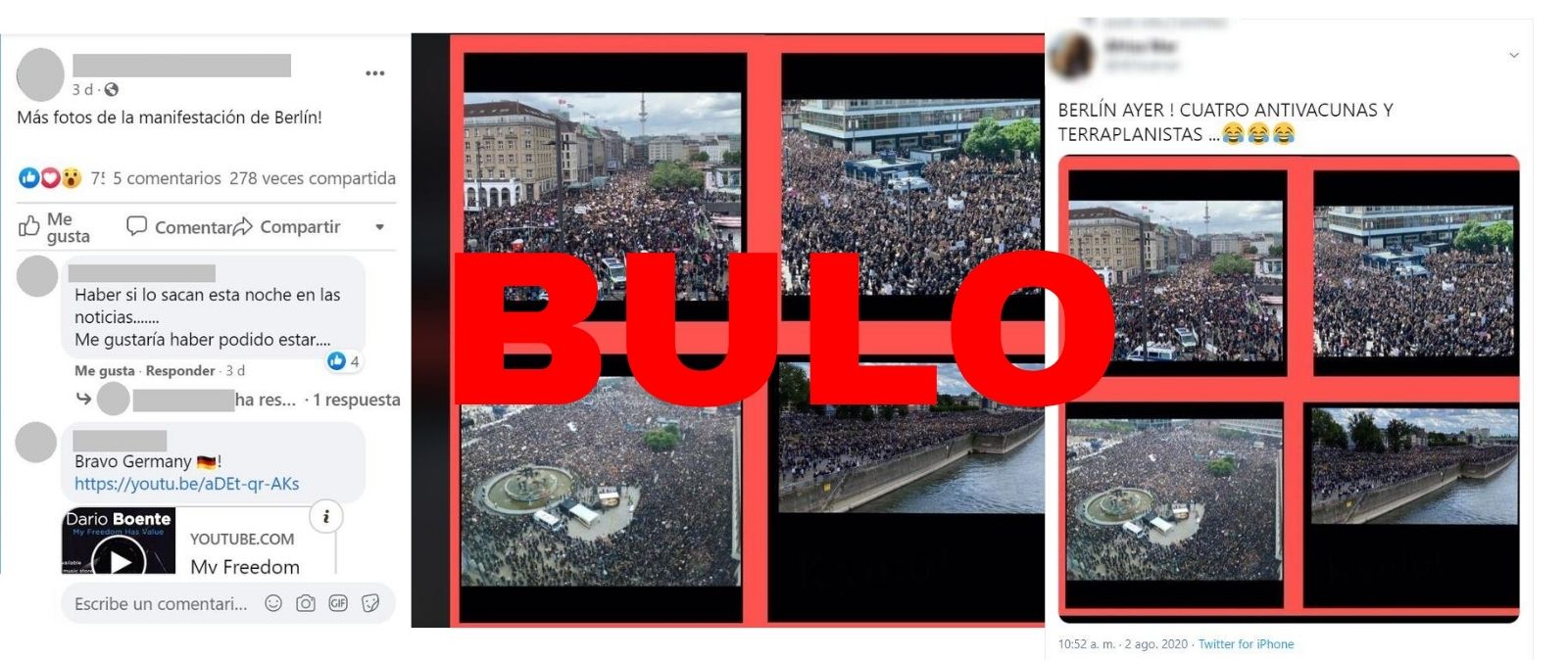 En España tampoco es la primera vez que circulan fotografías de calles abarrotadas de gente asegurando que se trata de la manifestación del 1 de agosto en Berlín, como os contamos aquí y aquí.