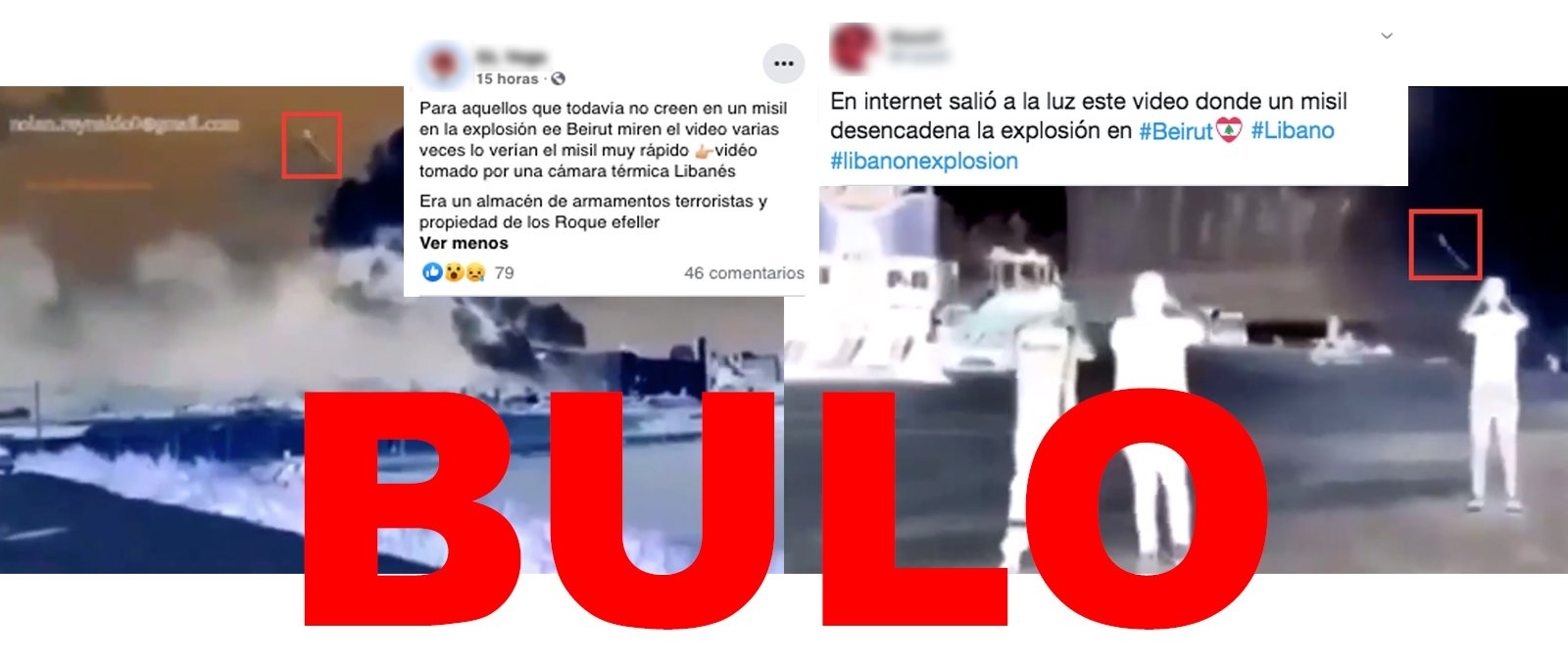 Se está compartiendo un vídeo en redes sociales que supuestamente demuestra que la explosión que tuvo lugar el pasado 4 de agosto en Beirut, capital de Líbano, fue un ataque de un misil. Pero es un bulo, está manipulado.