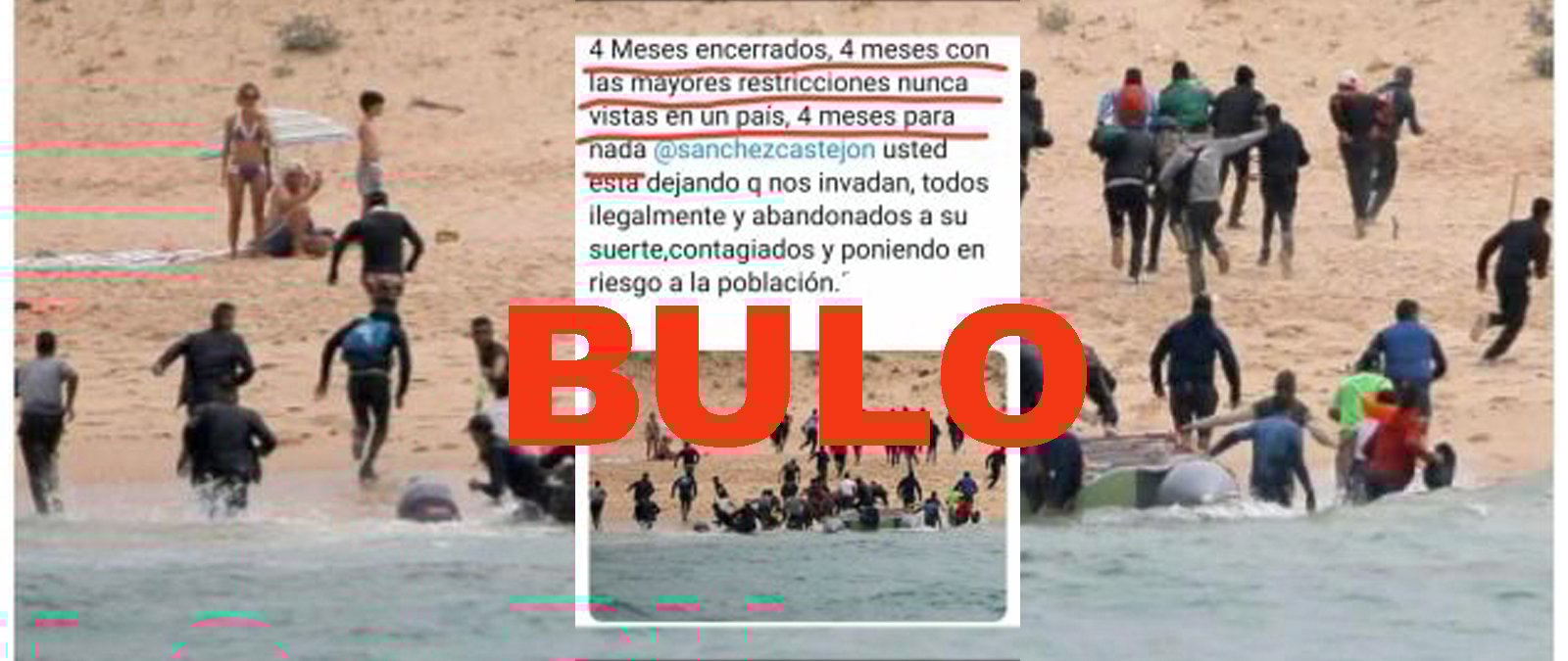 Se está difundiendo como actual una imagen de personas inmigrantes desembarcando en una playa por la que nos habéis preguntado. Esta foto se difunde con mensajes como "4 meses encerrados, 4 meses con las mayores restricciones nunca vistas en un país, 4 meses para nada @SanchezCastejon, usted está dejando que nos invadan, todos ilegalmente y abandonando a su suerte, contagiados y poniendo en riesgo a la población". Es un bulo: es una foto de 2018, mucho antes de que surgiera la pandemia del coronavirus.