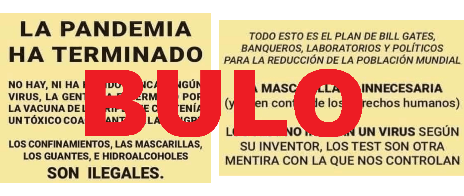 Muchos de vosotros nos habéis preguntado por una imagen que recoge varias afirmaciones falsas relacionadas con la COVID-19. Entre ellas, que en realidad "la gente ha enfermado por la vacuna de la gripe", que "los confinamientos, las mascarillas, los guantes y los hidroalcoholes son ilegales" o que, según su inventor, "los tests [PCR] no indican un virus" y "son una mentira". Se trata de un bulo. Os contamos lo que sabemos al respecto.
