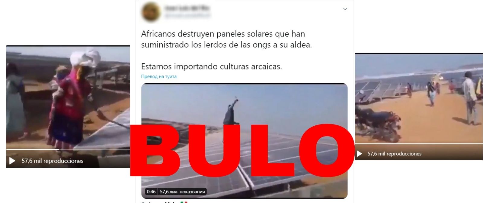 Circula un vídeo en el que se ve a personas romper a martillazos una serie de paneles solares. Los mensajes con los que se comparte el vídeo aseguran que se trata de "africanos" destruyendo los paneles que les han suministrado Organizaciones No Gubernamentales (ONG). Es un bulo. Son trabajadores en la India que protestan porque no les han pagado.