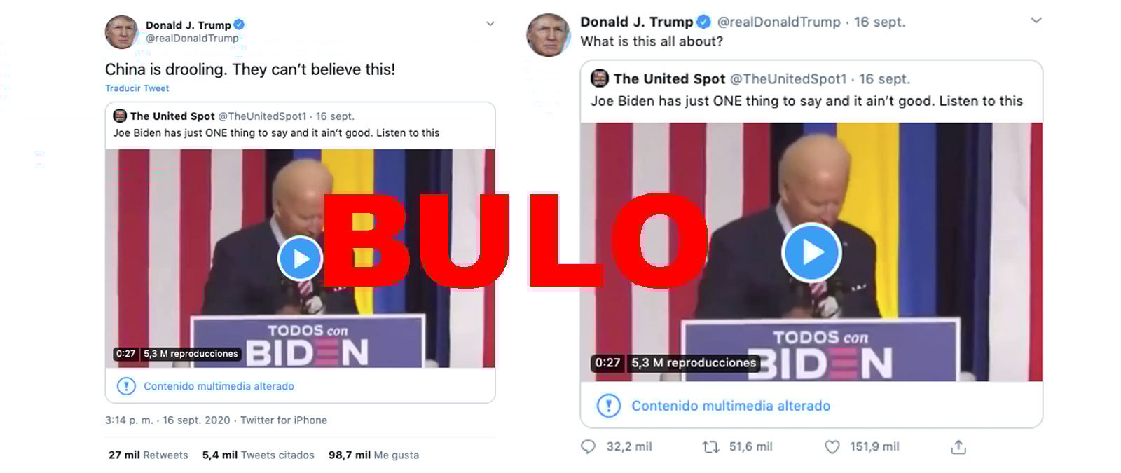 El presidente de los Estados Unidos, Donald Trump, ha difundido en dos ocasiones un vídeo manipulado en el que se ve al candidato demócrata, Joe Biden, reproduciendo desde su móvil y bailando supuestamente al son de 'Fuck tha Police', una canción de N.W.A que critica a la policía. Sin embargo, la realidad es que Biden estaba bailando la canción 'Despacito' de Luis Fonsi, quien también estaba en el evento celebrado el 15 de septiembre en Florida. Además, Twitter ha marcado el vídeo como "contenido multimedia alterado".