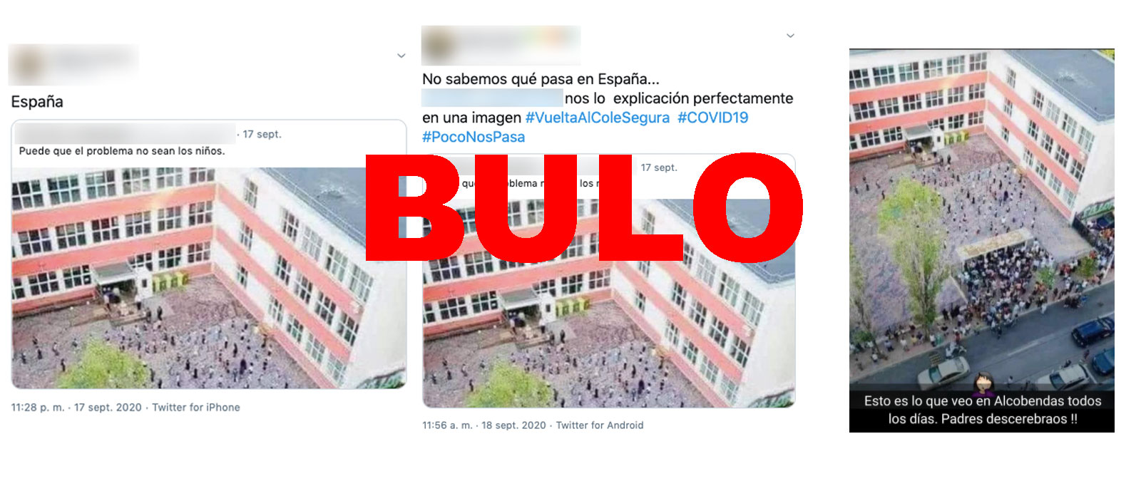 Coincidiendo con la vuelta al cole tras el parón por la COVID-19, se ha viralizado una imagen en la que aparecen decenas de niños manteniendo distancia en el interior de un colegio mientras los padres observan desde el exterior sin respetar dicha distancia. Pese a que en algunas publicaciones se asegura que la imagen ha sido tomada en España, la realidad es que corresponde a un colegio de Bucarest (Rumanía).