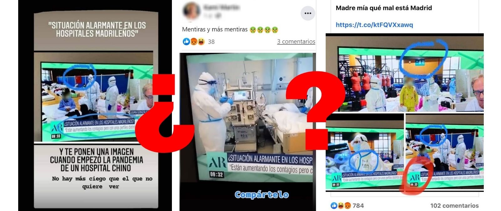 Esas imágenes se están compartiendo en redes sociales afirmando que se trata de "mentiras", pues se han usado vídeos grabados en China para mostrar supuestamente la situación en los hospitales madrileños.