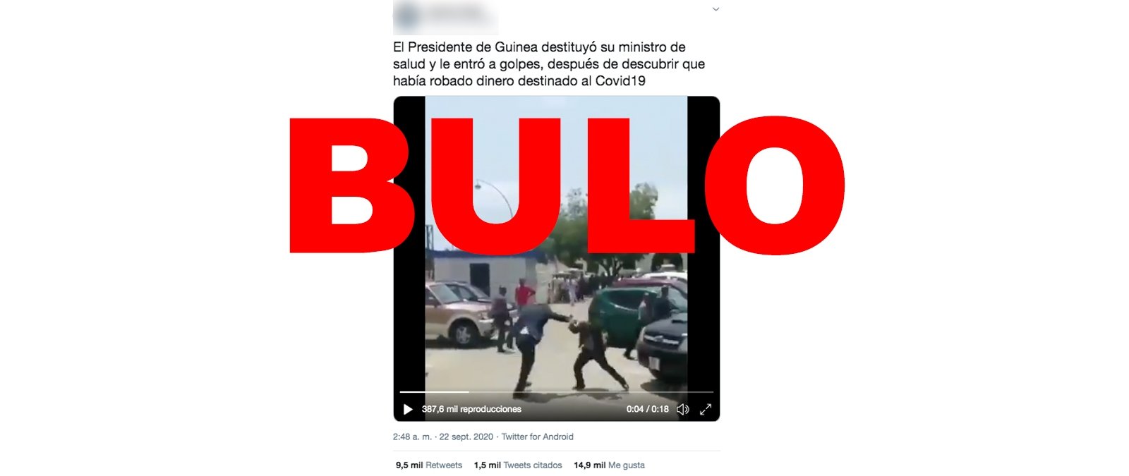 Por lo tanto, es un bulo que el vídeo muestre al presidente de Guinea golpeando al ministro de Salud tras descubrir que había robado dinero destinado a la COVID-19.