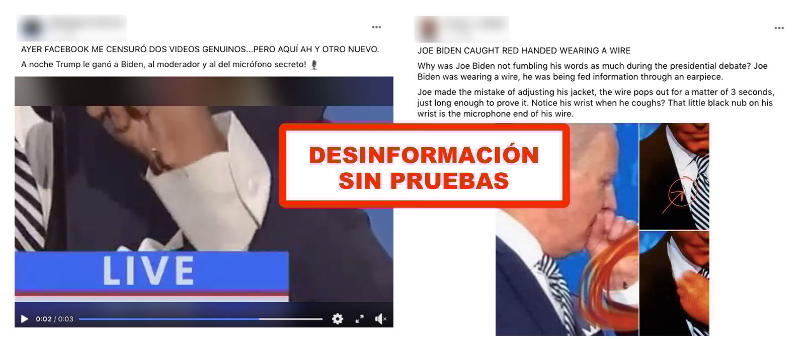 Desde la celebración del debate entre Donald Trump y Joe Biden el pasado 29 de septiembre, circulan varios contenidos que acusan al candidato demócrata de haber llevado un pinganillo para que le dijeran las respuestas. Una de las versiones de esta desinformación incluye una imagen en la que supuestamente aparece un micrófono en la manga de Biden, pero no hay ninguna prueba de que sea eso: la campaña del demócrata asegura que es el rosario de su hijo Beau, quien murió en el año 2015. De hecho, el propio Joe Biden explicó en una entrevista que no se quita el rosario desde su fallecimiento.