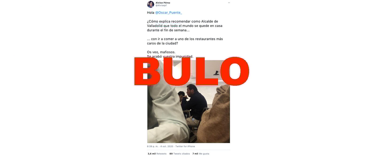 Se ha viralizado una foto del alcalde de Valladolid, Óscar Puente, comiendo supuestamente en "uno de los restaurantes más caros de la ciudad". Es un bulo: la imagen fue captada en uno de los restaurantes de la cadena de comida italiana Gino's, donde el rango de precios es de 10€ a 20€ por persona, según varias páginas web de reseñas.