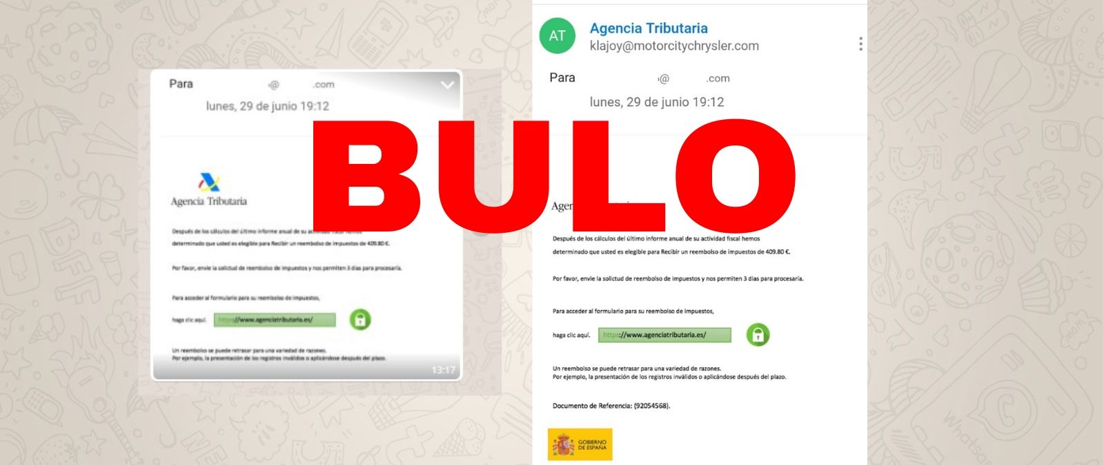 Nos habéis consultado a través de WhatsApp sobre un correo electrónico que está llegando supuestamente de la Agencia Tributaria para reembolsar impuestos por un valor de 409,80 euros. Pero ojo, no es un mensaje de Hacienda: es phishing, una técnica empleada para hacerse con tus datos personales o bancarios.