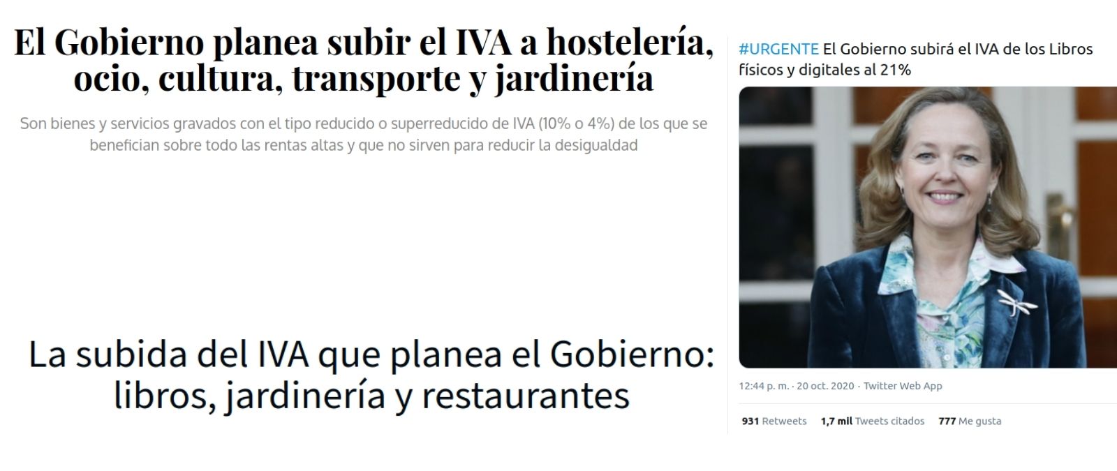 Se está viralizando que el Gobierno planea subir el IVA a varios productos, entre ellos, a los libros, tanto físicos como digitales. Os explicamos lo que sabemos: Nadia Calviño dijo en una entrevista que tiene que pensar "con un poco más de calma y de profundidad" si quitar el IVA superreducido a varios productos en base a un informe de la Autoridad Independiente de Responsabilidad Fiscal pero no ha dicho que vaya a subirlo. El Ministerio de Cultura niega que vaya a subir el IVA al sector cultural.