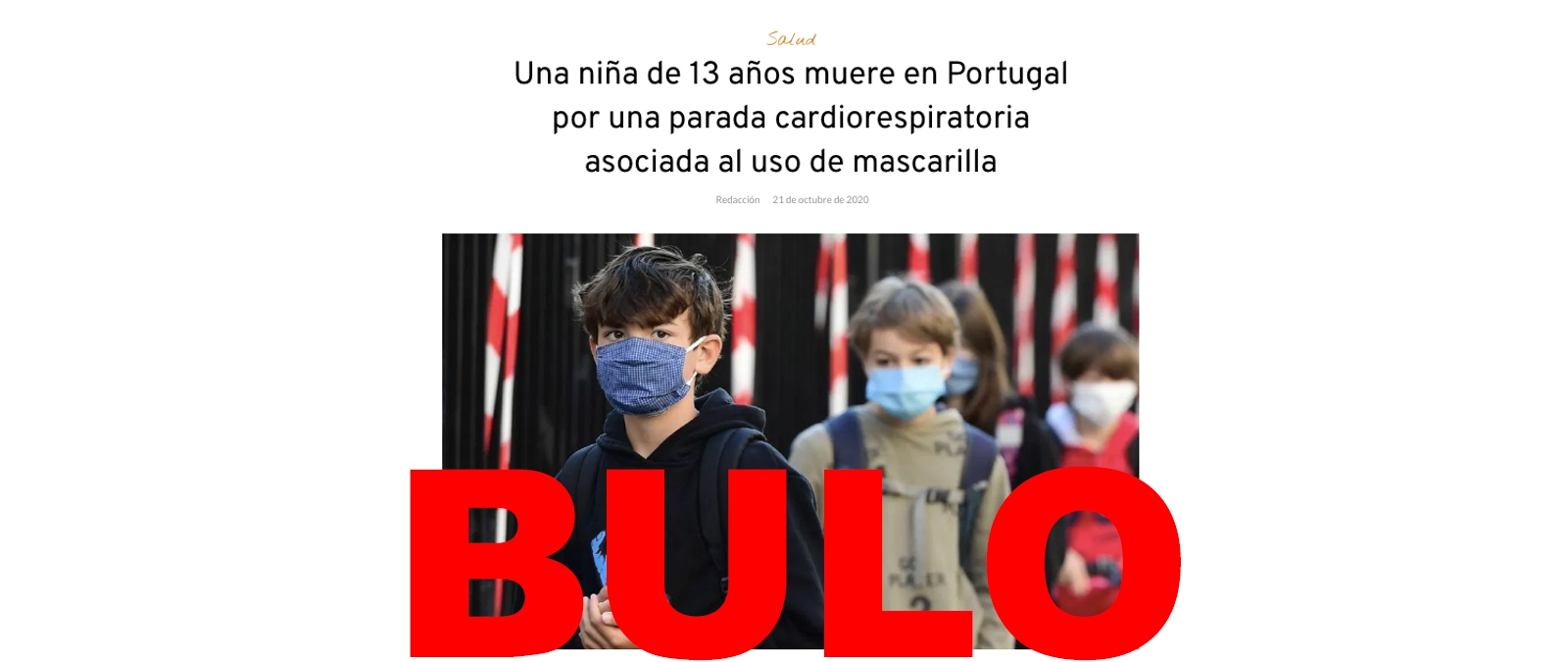 No, no ha muerto una niña de 13 años en Portugal por una parada cardiorrespiratoria "asociada al uso de la mascarilla" *