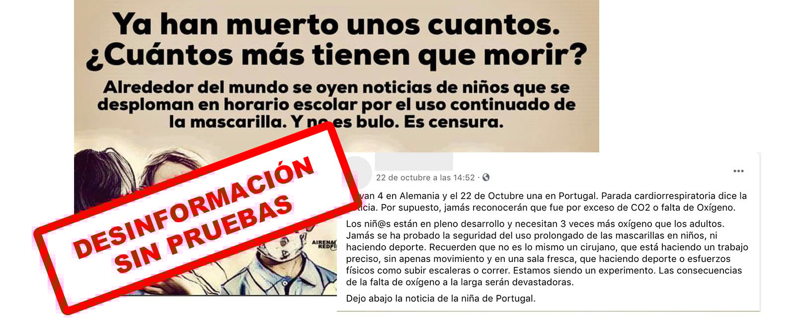 También hemos desmentido varias desinformaciones relacionadas con las mascarillas: por ejemplo, no hay evidencias científicas de que usar mascarilla cause hipoxia (falta de oxígeno en el organismo), tampoco hay evidencias de que estén provocando neumonías, ni de que su uso prolongado su uso prolongado produzca hipercapnia (concentración del dióxido de carbono en la sangre).
