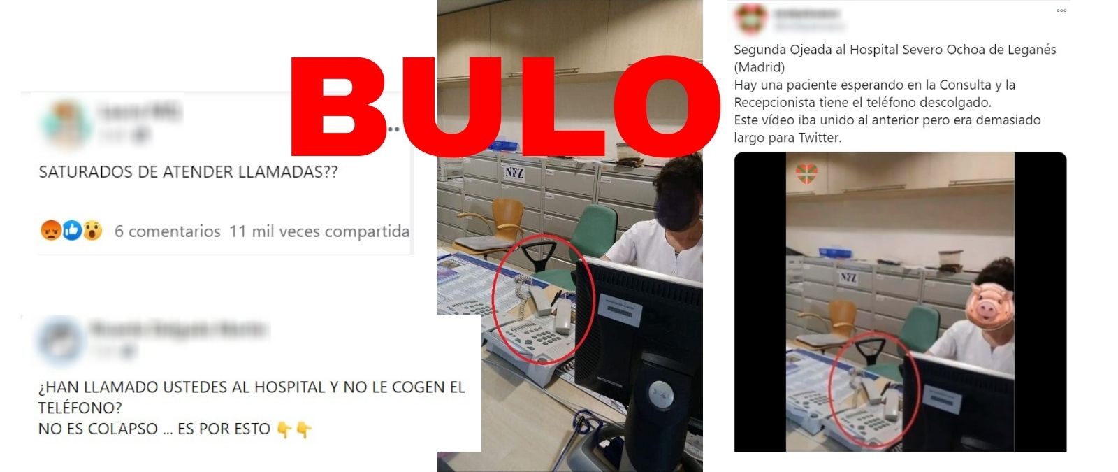 Nos habéis preguntado por una imagen que se está difundiendo en redes sociales, en la que se pueden ver dos teléfonos descolgados sobre el mostrador de un centro de salud. La foto se está compartiendo como si fuese en España y con mensajes como "¿Han llamado ustedes al hospital y no le cogen el teléfono? No es colapso... Es por esto". Es un bulo. La foto está tomada en Polonia, no en España.