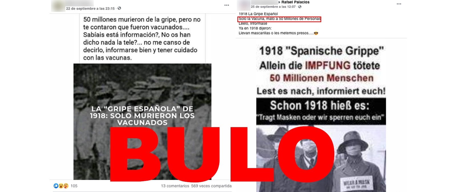 Por lo tanto, es un bulo que en la pandemia de "gripe española" de 1918 "sólo murieron los vacunados" o que "sólo la vacuna mató a 50 millones de personas". Además, esta desinformación ha sido desmentida también por verificadores de otros países como Reuters en EEUU, Newsmeter en India y Australian Associated Press en Australia, todos miembros del International Fact-Checking Network (IFCN), del que también forma parte Maldita.es.