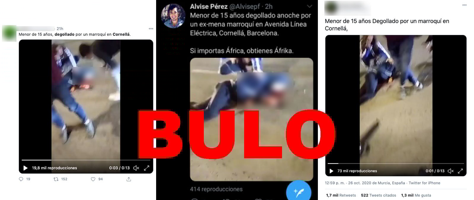 En concreto, se está moviendo un vídeo de un chico ensangrentado en el suelo que está siendo socorrido por otras personas. Según las publicaciones que lo difunden, el autor de la agresión sería "un ex-mena marroquí", pero los Mossos d'Esquadra, quienes intervinieron tras el suceso, nos dicen que eso "es mentira".