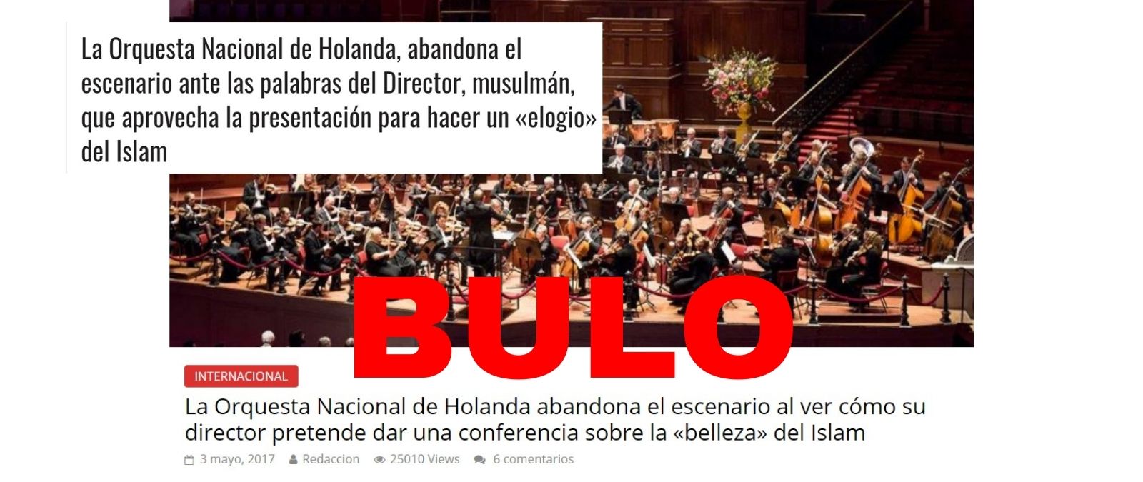Como decimos, el contenido ya se publicó en 2017 y ahora vuelve a difundirse un texto titulado "La Orquesta Nacional de Holanda, abandona el escenario ante las palabras del Director, musulmán, que aprovecha la presentación para hacer un 'elogio' del Islam".