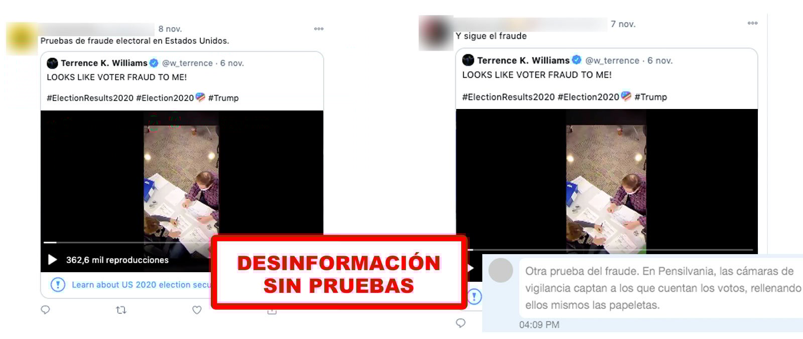El departamento de relaciones públicas del condado de Delaware ha asegurado a Maldita.es que han detectado vídeos "manipulados" que dicen mostrar a empleados públicos "rellenando fraudulentamente papeletas en blanco". Esos vídeos han sido sacados de la web oficial de dicho condado, que emitió en directo cómo se llevaba a cabo el recuento en distintas mesas.