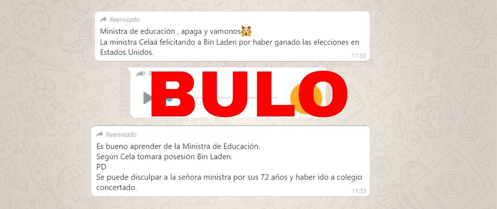 Después de haberse difundido que la ministra de Asuntos Exteriores, Arancha González Laya, había confundido a Joe Biden con Bin Laden en una entrevista, algo que ya hemos desmentido, nos habéis preguntado a través de nuestro chatbot de WhatsApp (+34 644 229 319) si ese mismo audio corresponde a Isabel Celaá, la ministra de Educación y Formación Profesional. Es un bulo. Las personas que difunden el audio no aportan ninguna prueba de que esa persona sea Celaá ni dicen dónde se ha publicado esa entrevista. Además, la ministra sólo ha ofrecido una entrevista desde que se celebrasen las elecciones de Estados Unidos, en la que no felicita ni a Joe Biden ni a Bin Laden, y desde el Ministerio de Educación niegan que sea su voz.