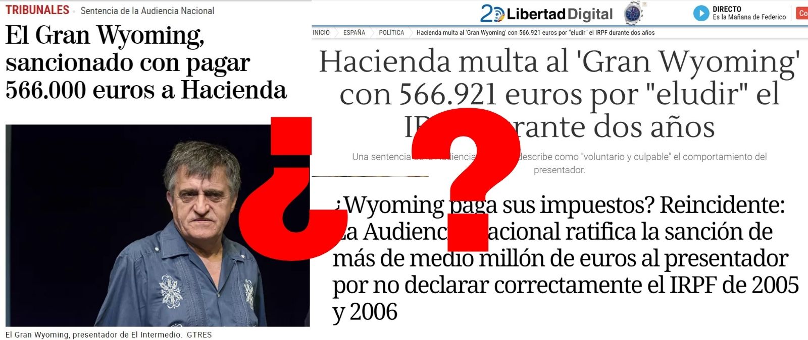 Tras la publicación de VozPopuli, titulada "Golpe de la Audiencia Nacional a Wyoming: ratifica una nueva sanción de Hacienda", la sección La Otra Crónica, de El Mundo, publicó un titular que decía "El Gran Wyoming, sancionado con pagar 566.000 euros a Hacienda". La web Libertad Digital publicó un contenido titulado "Hacienda multa al 'Gran Wyoming' con 566.921 euros por 'eludir' el IRPF durante dos años" y otra llamada Hispanidad tituló "¿Wyoming paga sus impuestos? Reincidente: La Audiencia Nacional ratifica la sanción de más de medio millón de euros al presentador por no declarar correctamente el IRPF de 2005 y 2006".