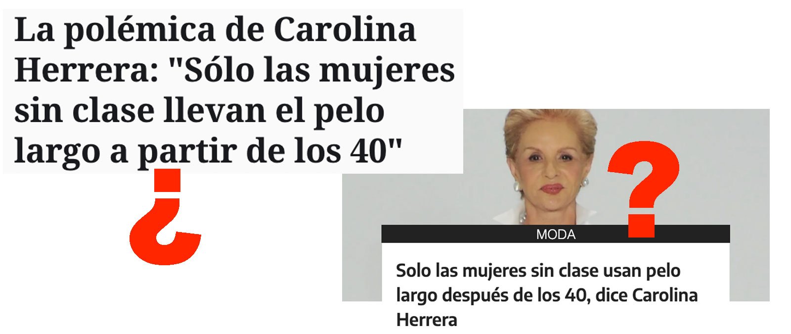 Varios medios de comunicación y publicaciones en redes sociales se han hecho eco en los últimos días de unas supuestas declaraciones de la diseñadora Carolina Herrera en las que habría descrito como "mujeres sin clase" a aquellas que llevan pelo largo pasados los 40 años. La realidad es que Herrera sí se ha mostrado contraria a que las mujeres mayores lleven el pelo largo en al menos dos entrevistas, aunque en ninguna de ellas las describía como personas "sin clase".