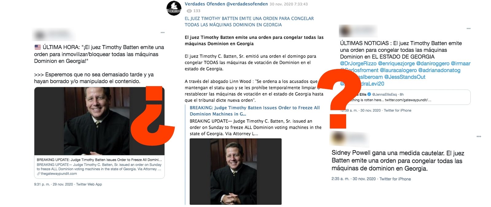 Está circulando por redes sociales que el juez Timothy Batten ha emitido una supuesta orden para “congelar” todas las máquinas de votación de Dominion, compañía que vende hardware y software de votación electrónica, en el estado de Georgia, en Estados Unidos.