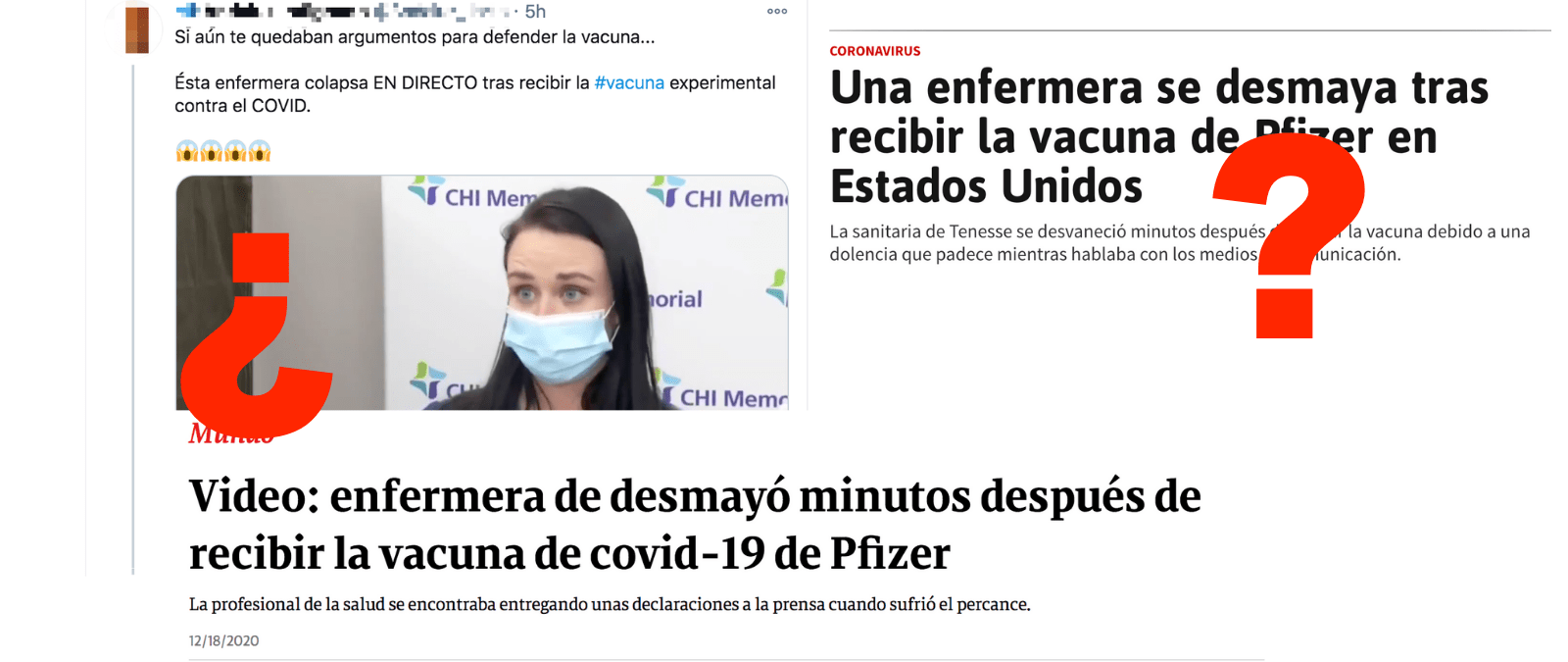 “Estamos emocionados por recibir la vacuna” dijo a los periodistas Tiffany Dover, la enfermera jefe del hospital Chi Memorial de Tennessee que se vacunó el 17 de diciembre contra la COVID-19. Acto seguido comentó que se encontraba“realmente mareada”, se tocó la frente, se disculpó y se desmayó, como podemos observar en el vídeo.