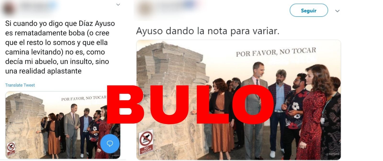 La foto de Isabel Díaz Ayuso, presidenta de la Comunidad de Madrid, tocando una obra de arte que tiene un cartel de 'NO TOCAR es un montaje que se ha viralizado como real. Os lo explicamos.