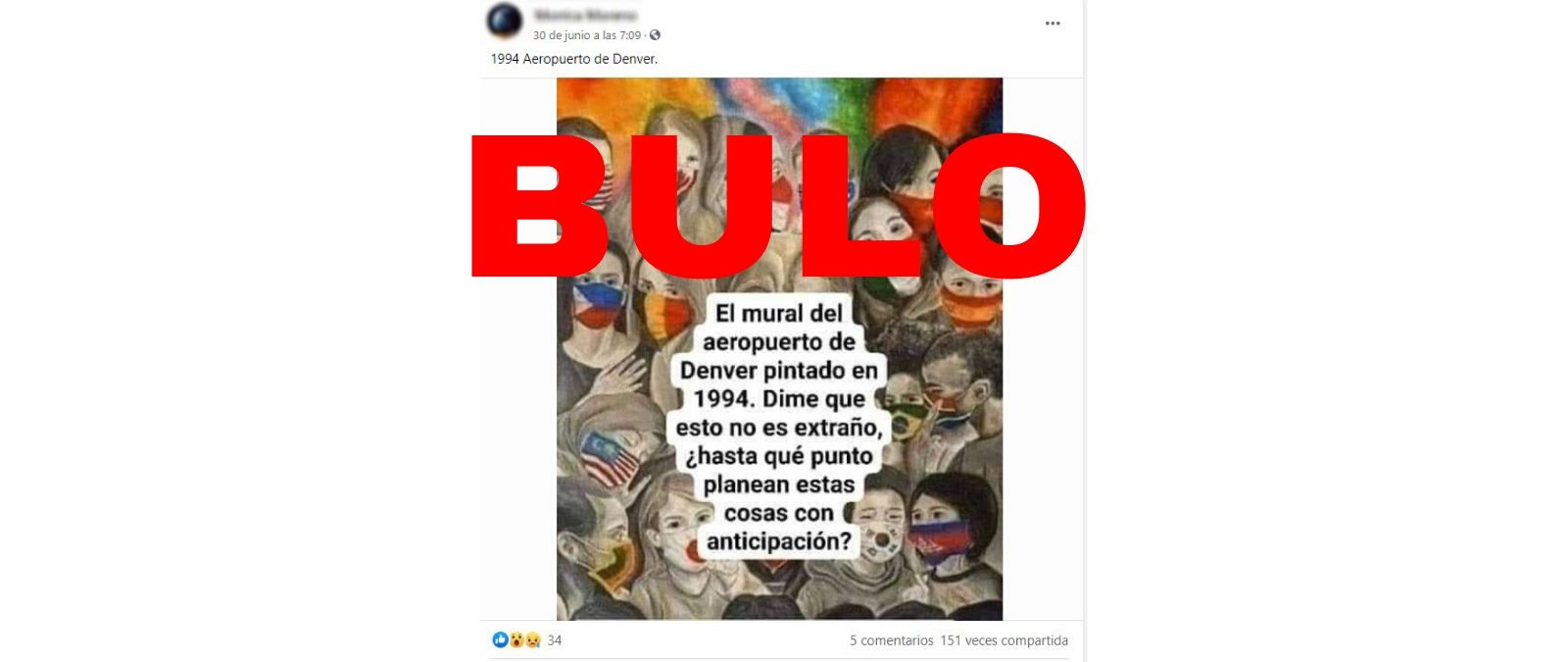 Está circulando una pintura en la que aparecen personas con mascarillas de las banderas de diferentes países asegurando que se trata de un "mural del aeropuerto de Denver pintado en 1994", como si hubiese predicho la pandemia actual de coronavirus. Es un bulo. Se trata de una obra reciente que se ha hecho viral y que se atribuye a un artista filipino.