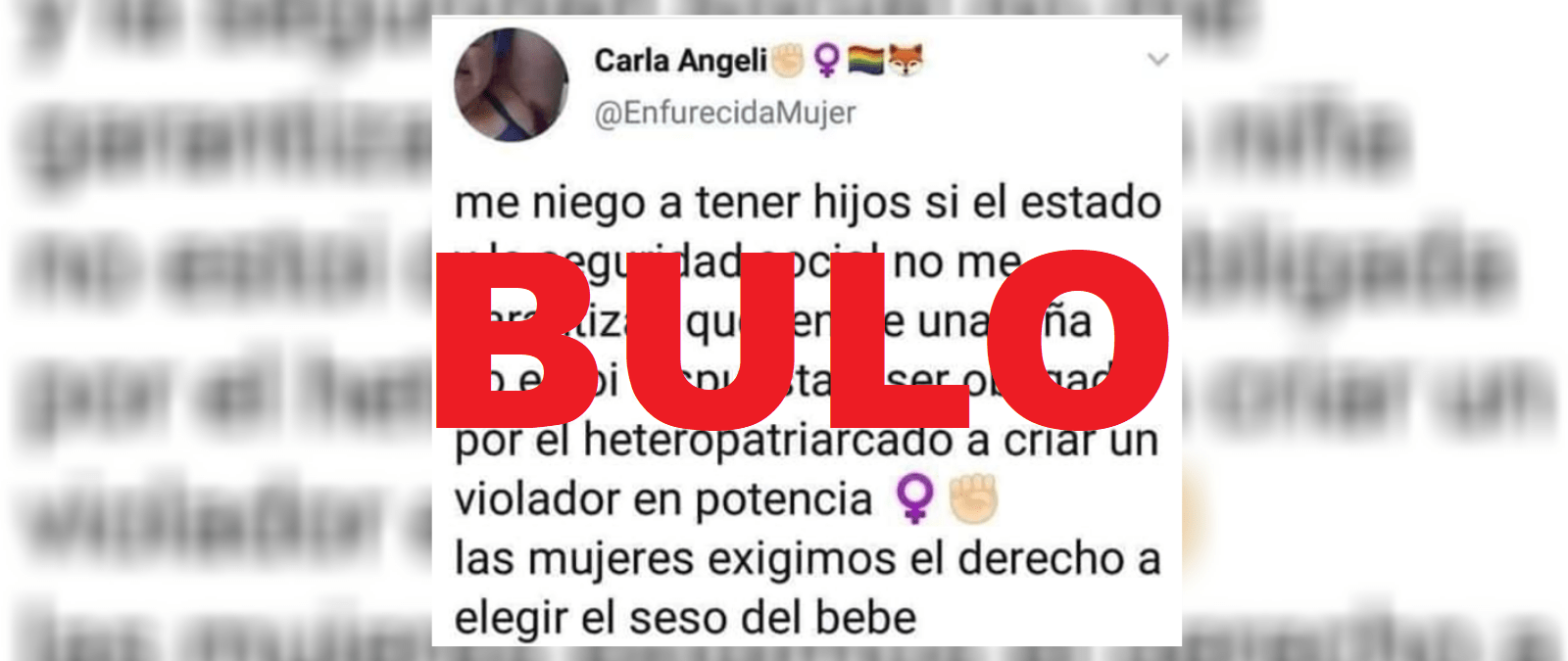 Actualmente, la supuesta cuenta feminista de "Carla Angeli", cuyo handle es EnfurecidaMujer, ha sido borrada de esta red social. El tuit circula como una sola captura y sin link.