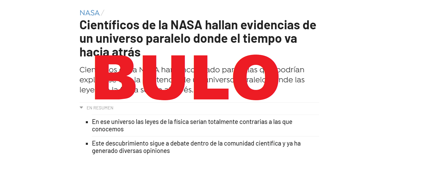 Tampoco se menciona nada sobre un universo paralelo en los comunicados recientes de la NASA ni en su cuenta de Twitter, tal y como cuenta Colombia Check, miembro del International Fact Checking Network (IFCN), como Maldita.es.