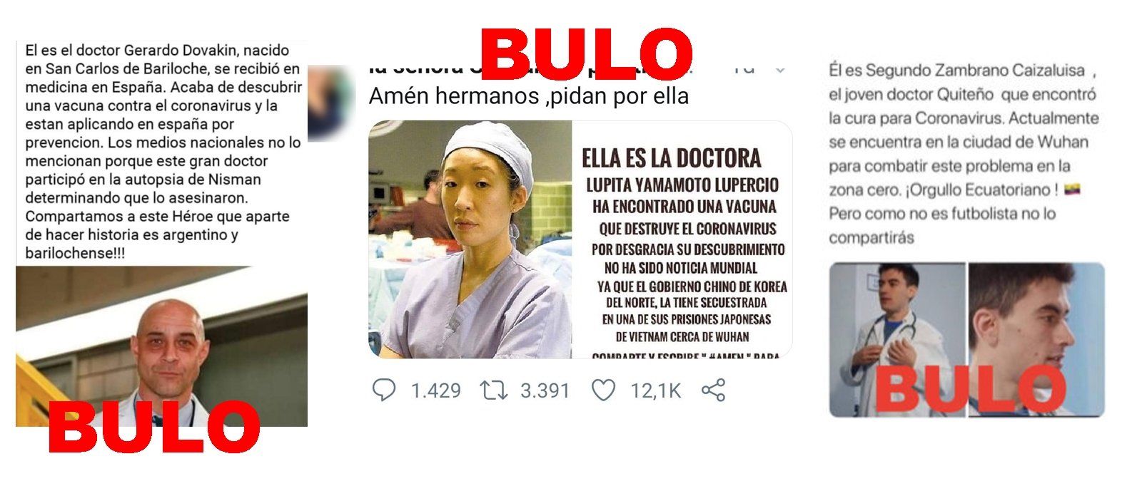 Una de las imágenes que circula es la del actor argentino Ramiro Blas, a quien identifican falsamente como el doctor Gerardo Dovakin. Según la imagen, habría descubierto la vacuna contra el coronavirus y la estaría "aplicando en España por precaución".