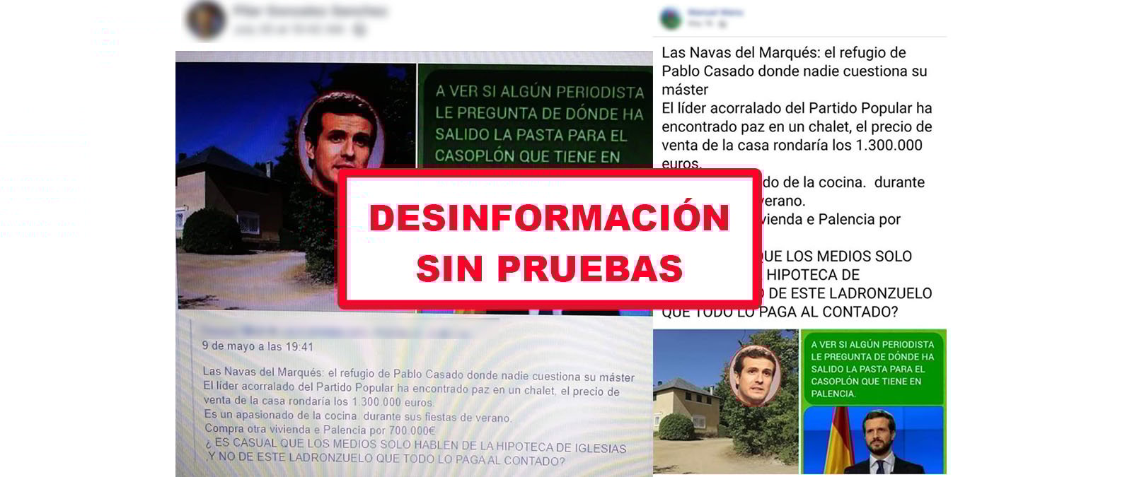 La publicación utiliza algunos datos, además de la foto de portada, de un reportaje publicado en El Español el 18 de agosto de 2018. Bajo el título "Las Navas del Marqués: el refugio de Pablo Casado donde nadie cuestiona su máster", el periódico explica que Pablo Casado se ha alojado en esa casa desde 2011, siempre "en régimen de alquiler". Por otro lado, el inmueble está valorado en 300.000 euros, no 1.300.000 como asegura el mensaje.