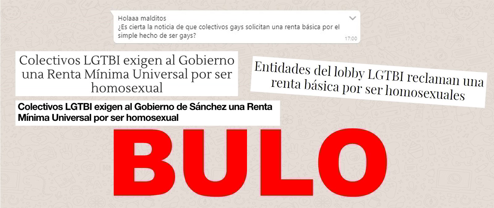 Nos habéis consultado por contenidos que afirman que colectivos LGTBI piden al Gobierno una Renta Mínima o Básica Universal "por ser homosexual". Es un bulo. Los contenidos hacen referencia al Manifiesto LGBTI por una Renta Básica Universal que han firmado más de 50 colectivos y que reclama una prestación para todo ciudadano por el hecho de serlo, pertenezca al colectivo LGBTI o no.